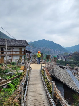 '천호'라는 이름처럼, 이 마을에는 천 채가 넘는 전통 목조 가옥이 산비탈을 따라 층층이 펼쳐져 있어 마치 하나의 거대한 민속 박물관을 연상케 합니다. 높은 곳에서 내려다본 마을 전경은 황토색 지붕들이 층층이 이어지며 형성한 장관으로, 처음 보는 순간 탄성을 자아내게 만들었습니다.